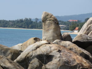 We visited many of the beaches during our outing as well, including Bophut, Chaweng, Chaweng Noi and Lamai. They were less crowded than I’d been expecting and the sand was nice and clean and soft underfoot. We stopped at the Hin Ta and Hin Yai rocks (aka Grandpa and Grandma Rocks) resembling male and female genitalia. It was a lot easier for me to recognize “grandpa” than “grandma,” although she was definitely there.