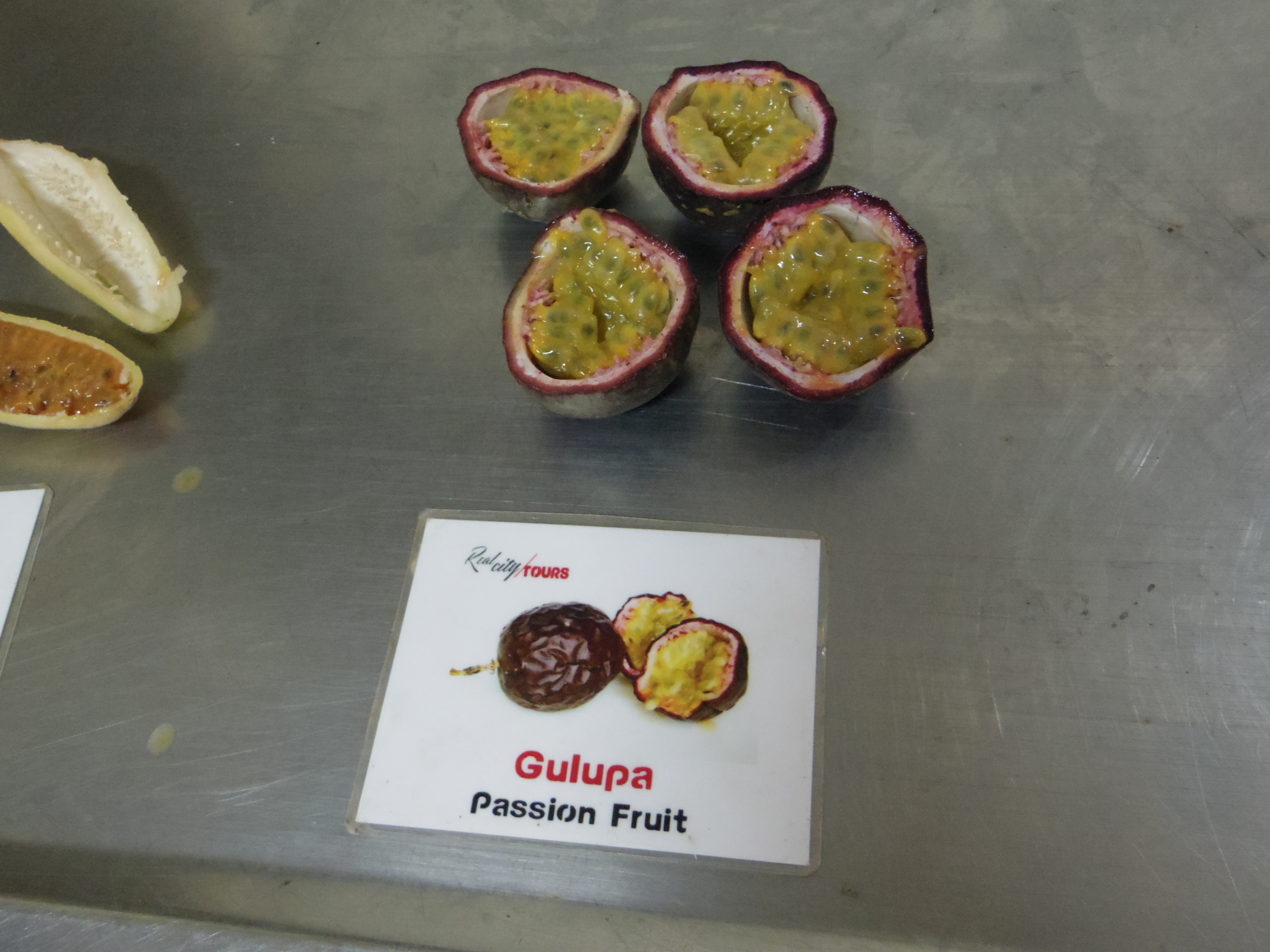 We were able to try four different types of passion fruit. All have relatively slimy insides and remind me of alien babies. You just suck the mess of seeds down oyster style. Unless I close my eyes and slurp, I don’t get very far. The gulupa was my favorite as it seemed to be the sweetest.