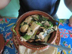 I ordered some tacos that were spiced very nicely with green peppers. I also treated myself to my favorite Mexican orangeade called a “naranjada.” Ryan tried a cazuelita chio which tasted a little earthy for my liking. His agua de horchata was so good that I ordered one for myself, once I had polished off my naranjada.
